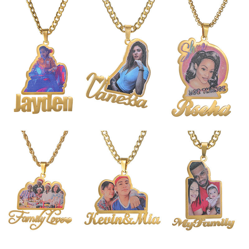 Customized Colorful Photos Stainless Steel Name Necklace Fashion Jewelry